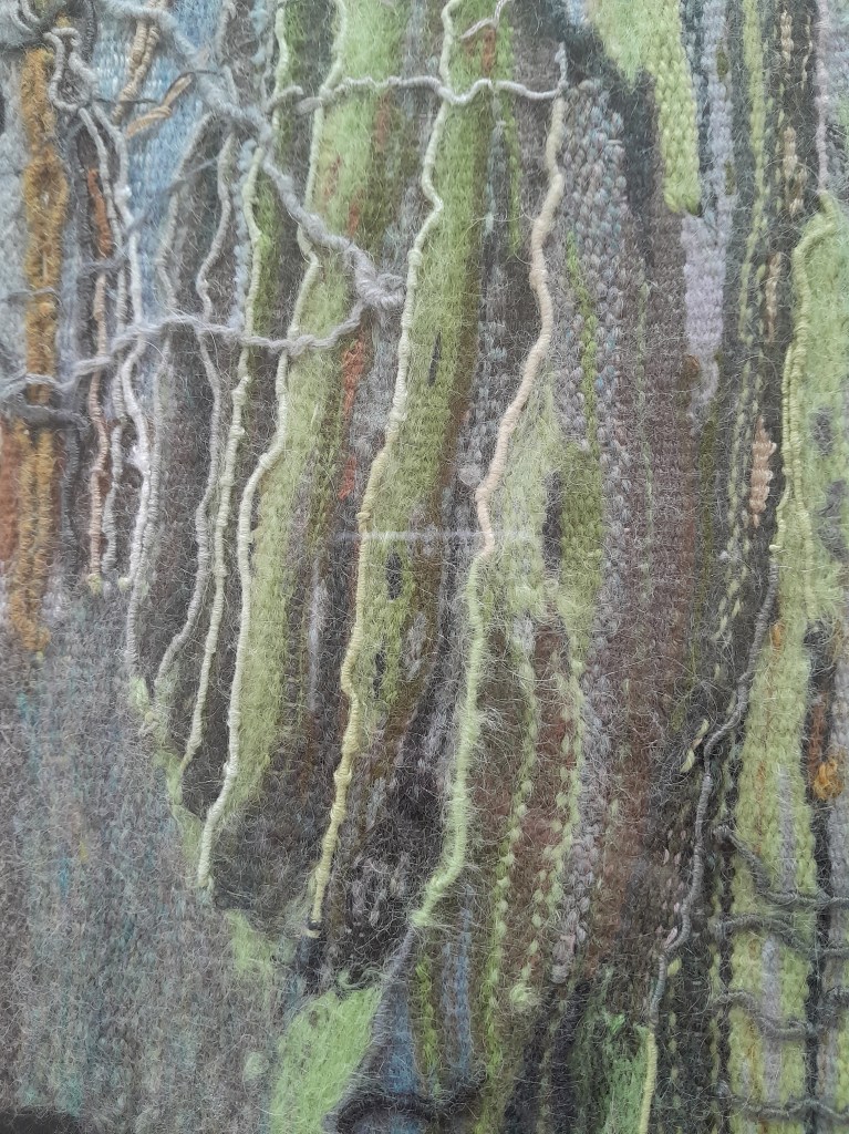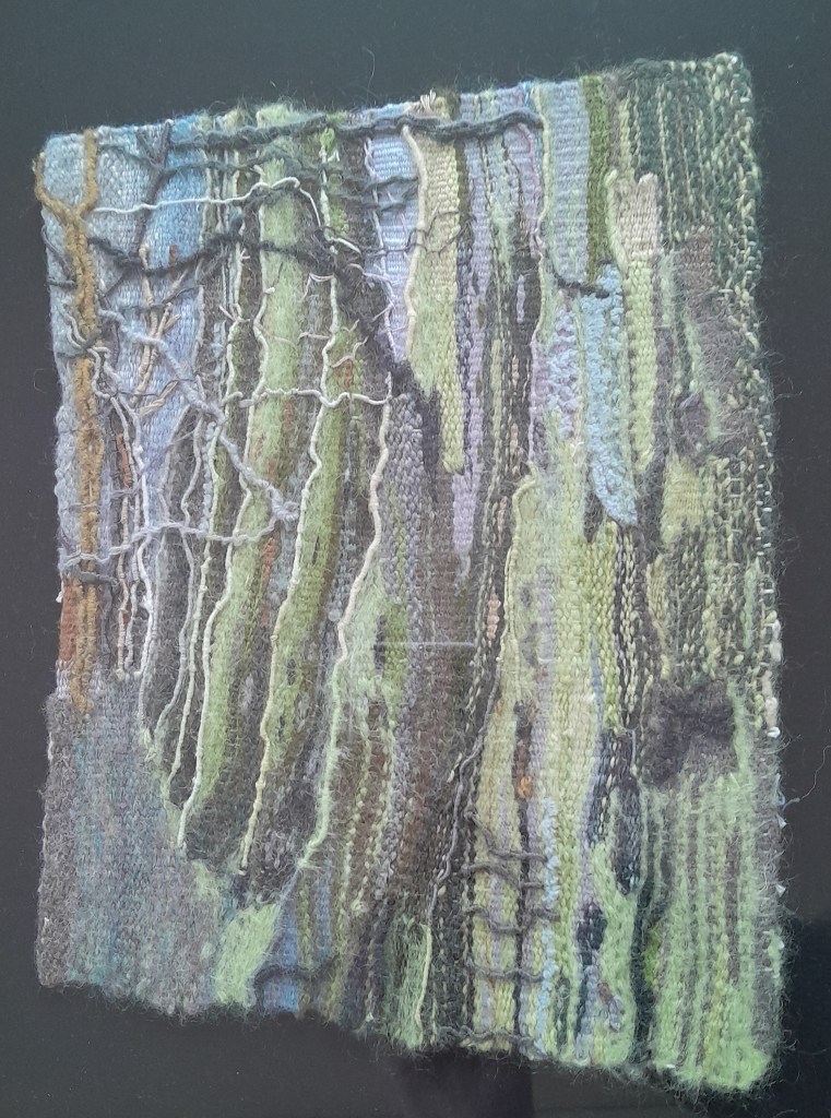 Sandra’s journey is a little closer to home! Inspired by a lovely treelined walk in Ystradgynlais. This is a journey that started with a 3 day tapestry workshop in October 2021. This was a fantastic opportunity to learn how to do tapestry properly and so this work was a chance to put those new skills into action, especially wrapping threads.
