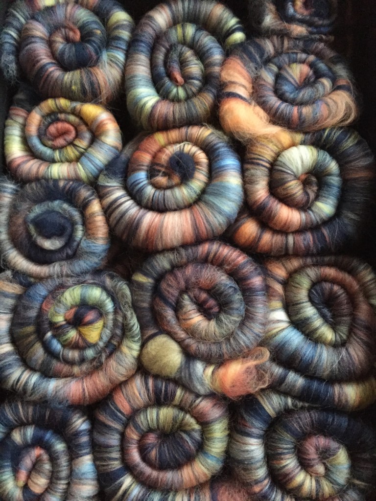And spun and plied them together to create 500g of a 2 ply yarn of approximately dk weight.