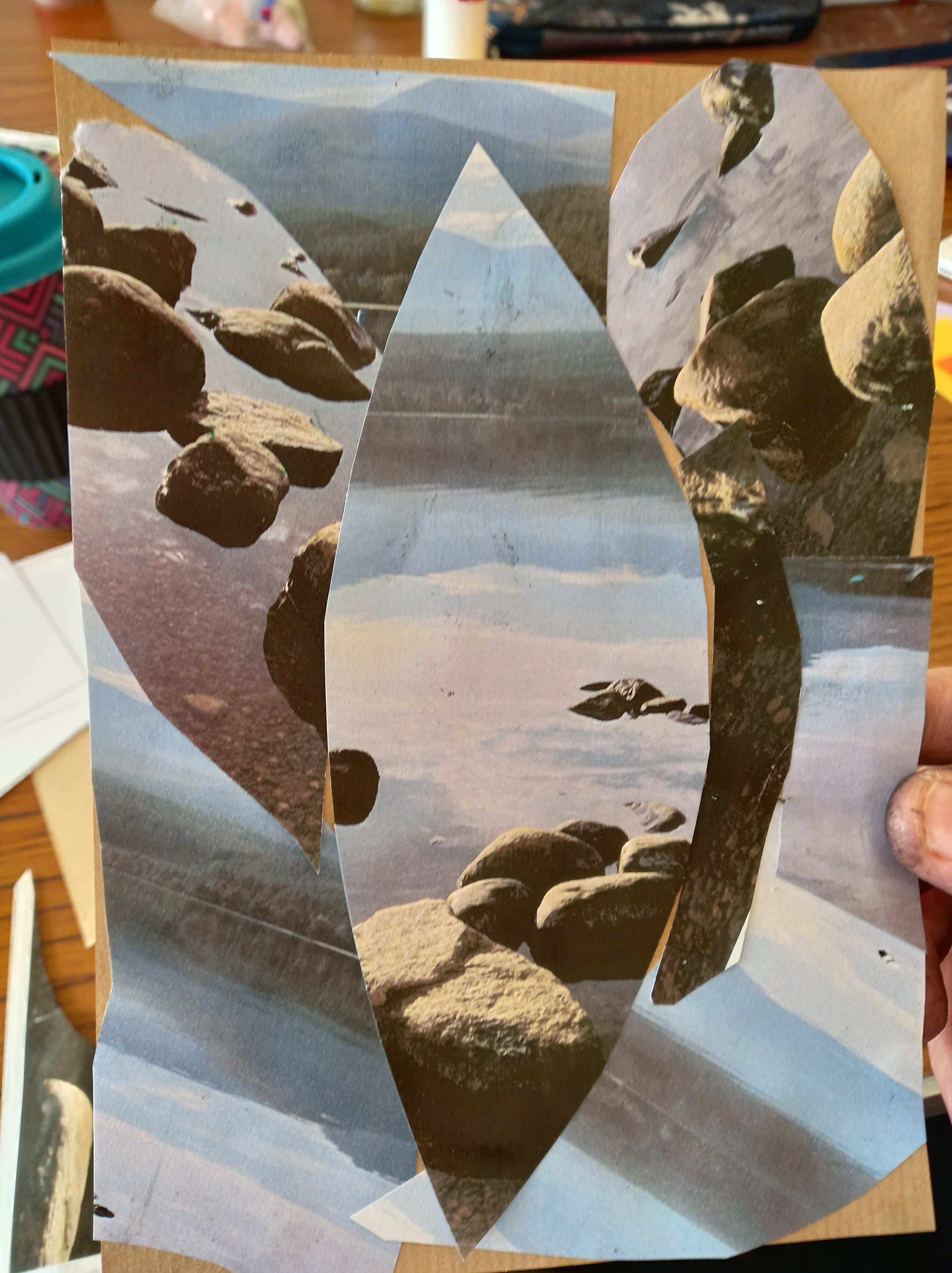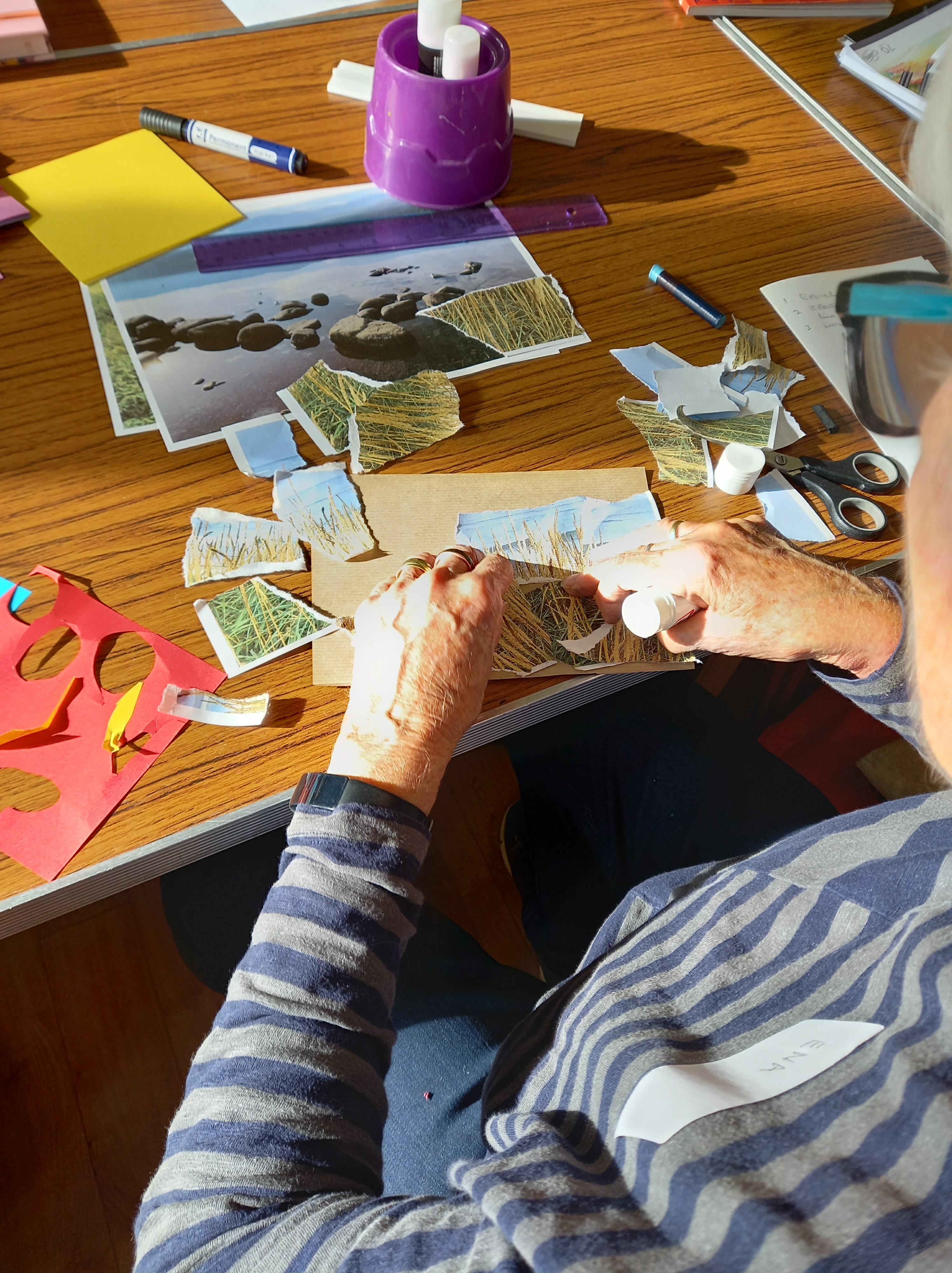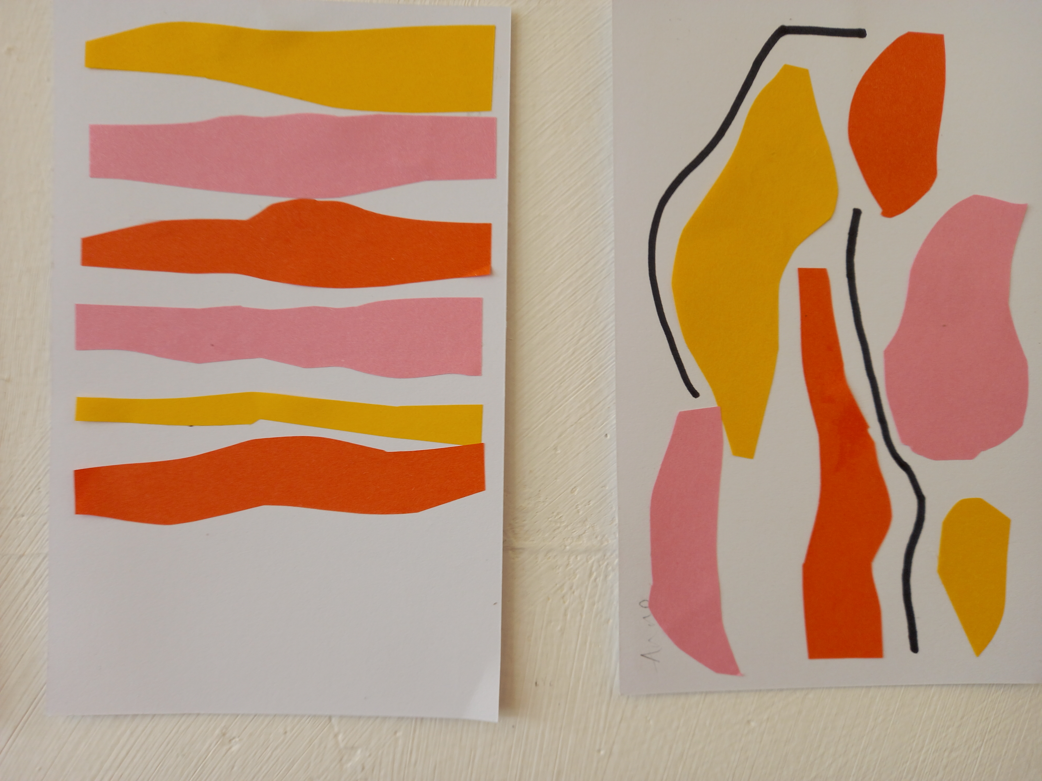 The workshop started with Jane getting us to cut up pieces of coloured paper and sticking them onto card. It may sound simplistic but was a great way to just create and, in fact one of the group based her final work on this exercise