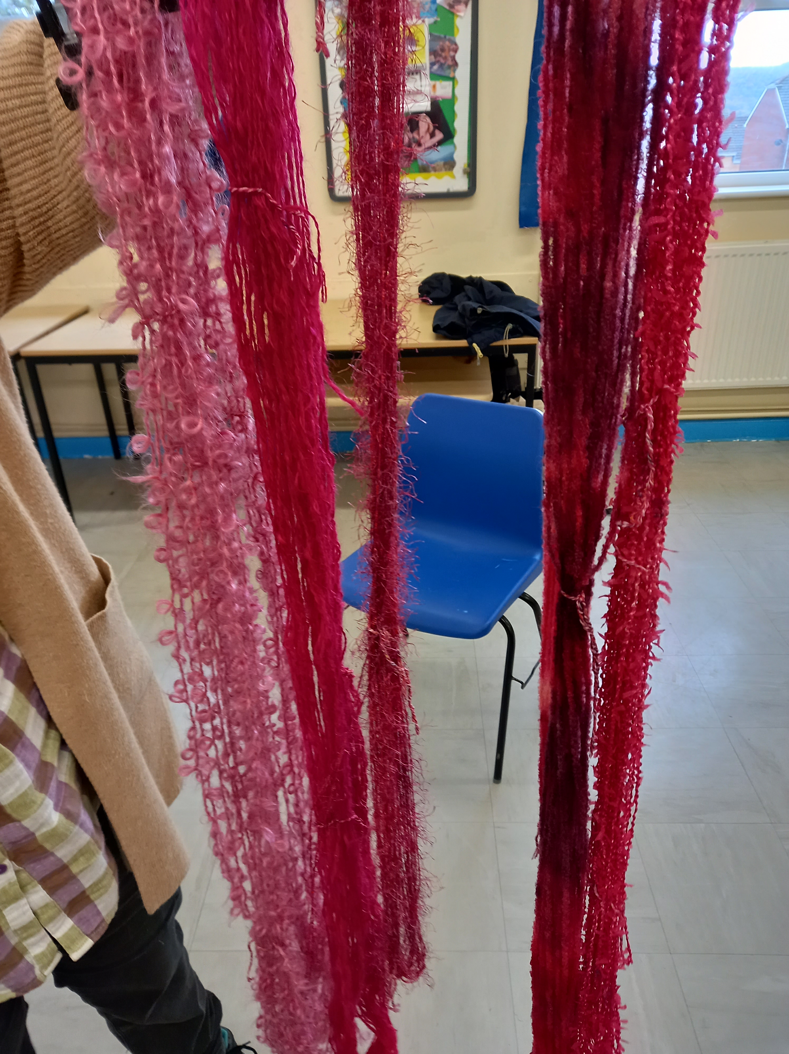 Clare had to make her own 4ply cords which were then manipulated into various shapes using a gripped to assist in the construction. It is a time consuming process but one which she intends to carry on struggling with.