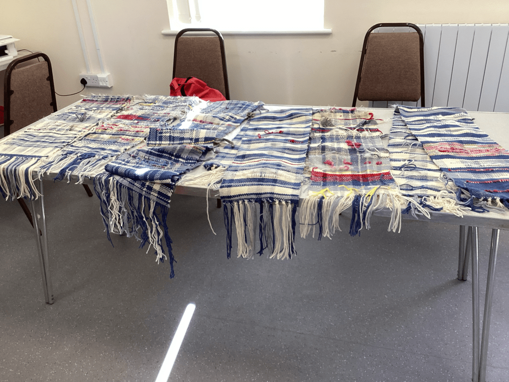 4 months on many of the tapestries have been finished, some are still on the go and a couple of people have decided the tapestry is not for them. It was an amazing opportunity to learn how to do things properly and the first workshop that we had managed to have in person for nearly two years.