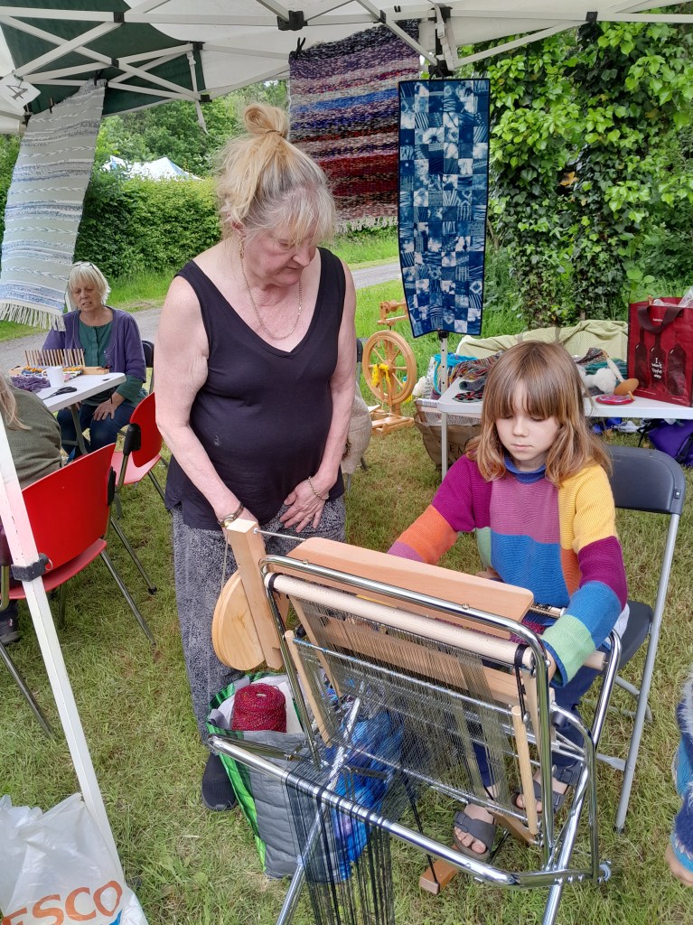 The Green Gathering at the Riverside Centre Pontardawe was amazingly well attended. There was lots of enthusiasm to learn spinning and weaving skills from young and old with some of us even doing some outreach work helping other stallholders to learn to spin !