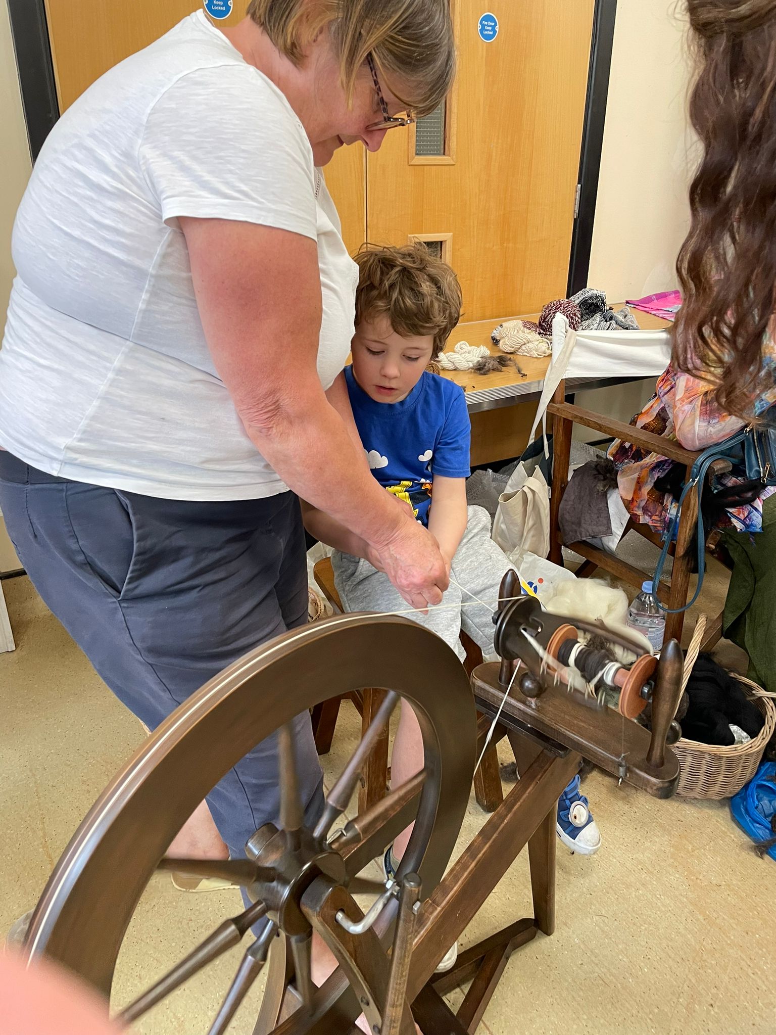 The Guild had a lovely afternoon demonstrating spinning and weaving techniques. Lots of people had a go and here are just some of the photos.